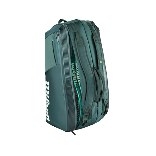 9 ütő tárolására alkalmas tenisztáska. Két nagy rekesszel rendelkezik, valamint oldalsó zsebekkel. Mérete: 73,5 x 33 x 33 cm